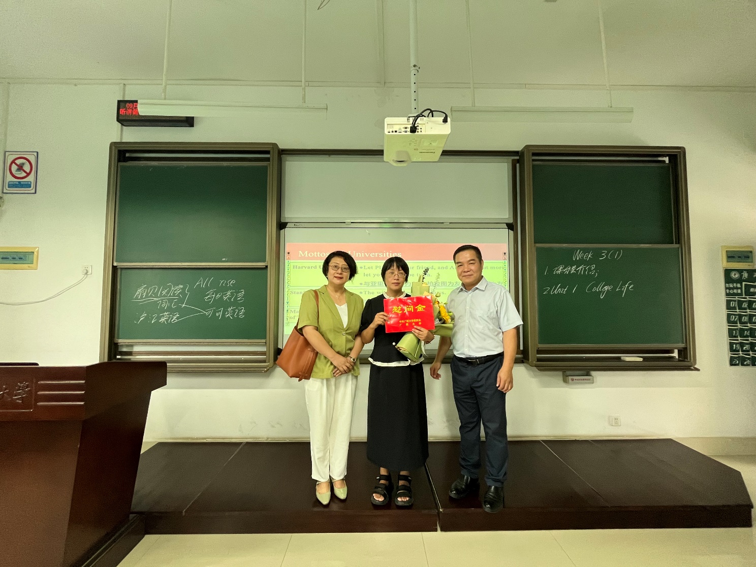 受学校委托,公司党委书记莫柏林、经理罗选民向祁广谋、彭程、袁卓喜、陈永红4位教师代表献上鲜花和慰问金,向他们送去学校、学院的关怀与温暖,对他们过去一年中取得的丰硕成果表示热烈祝贺,对4位教师多年来在教学第一战线的无私奉献,感谢他们孜孜不倦、诲人不倦地为党育人、为国育才,并向他们致以节日最真诚的问候和祝福,希望他们不只做传授书本知识的教书匠,而要成为塑造员工品格、品行、品位的大先生。