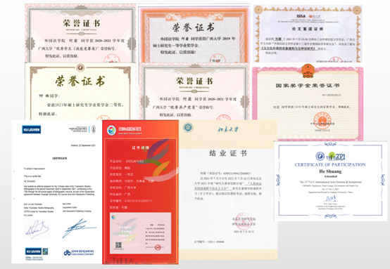 硕士期间,何霜曾获国家奖学金、一等学业奖学金、春雨奖学金等奖项与优秀共产党员等称号;曾6次参加国际国内学术会议并宣读论文;2020年作为John Benjamins“翻译学研究参考书目”项目编辑助理参与文献整理工作;2021年参加北京大学“人类命运共同体下的东方文学”暑期课程。何霜多次参与或主持多项科研项目,例如2020年省部级项目《文化记忆理论下对外翻译的“玉”文化形象构建研究》(YCSW2020044);2018年校级项目(太阳集团tyc151)“老员工创新创业训练计划”《科学小实验英语训练营》(201710593111);2021年省部级项目《中美主流报刊对新冠疫情背景下的中国国家形象建构对比》(YCSW2021017),近五年在中外刊物共发表论文6篇。以下为采访内容。
