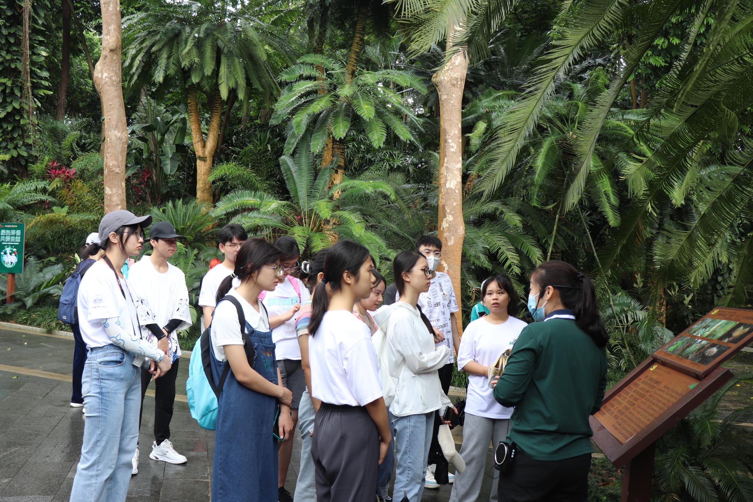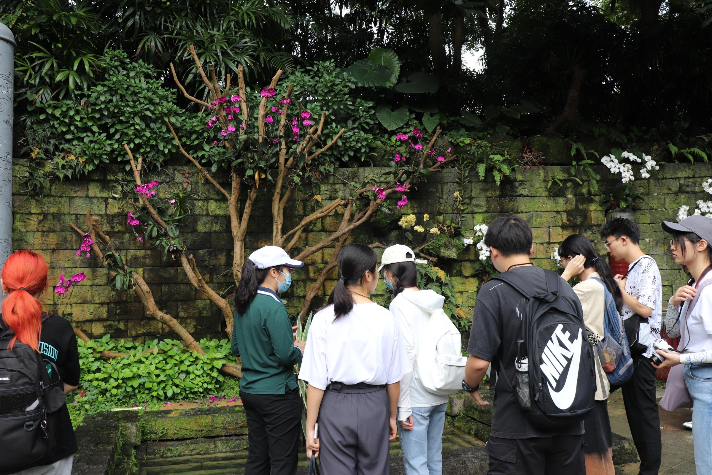 2022年7月8日上午,太阳集团tyc151新文科实验班(汇学班)全体学员与班主任邵青博士、越南语系助理教授秦爱玲博士一同赴青秀山进行林学科考活动。